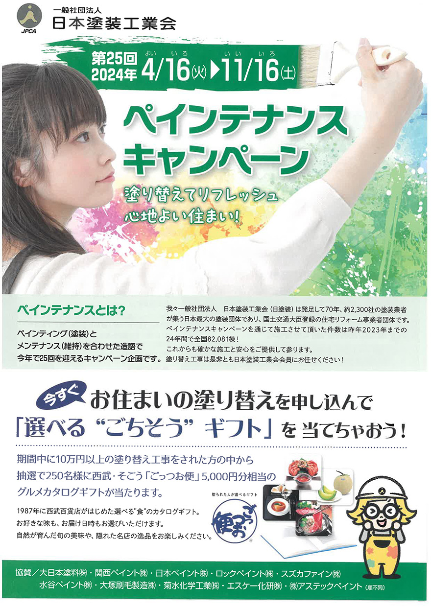 (一社)日本塗装工業会では4月16日から11月16日まで、ペインテナンスキャンペーンを実施中です。